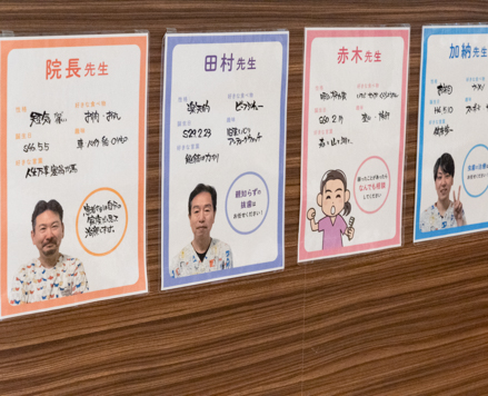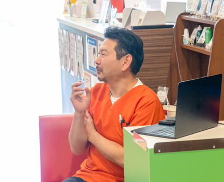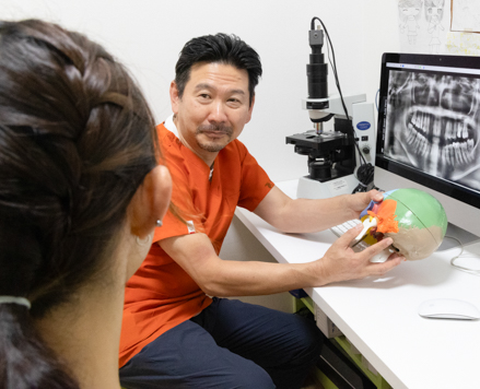 歯科医院という場所で緊張してしまう患者さまは、まだまだ多いことでしょう。私たちにこにこデンタルクリニックでは、その緊張をほぐし患者さまの立場に立った診療をするため、コミュニケーションを大切にしています。治療は、患者さまそれぞれのライフスタイルを知り、なるべくご負担が少ない方法を選択します。いくつかの選択肢が考えられる場合に念頭に置いているのは、「その患者さまが自分の家族だったらどう治療するか」です。お口の状態は患者さまご本人にも詳しくご説明しますので、一方的な治療ではなく、私たちと二人三脚で良くしていきましょう。皆さまにとって私たちが「ここなら相談できる」という場所になれましたら幸いです。