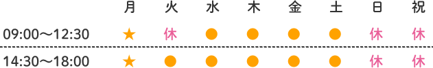 ★月曜日は隔週の診療となっておりますので、恐れ入りますがお電話にてお問い合わせください。